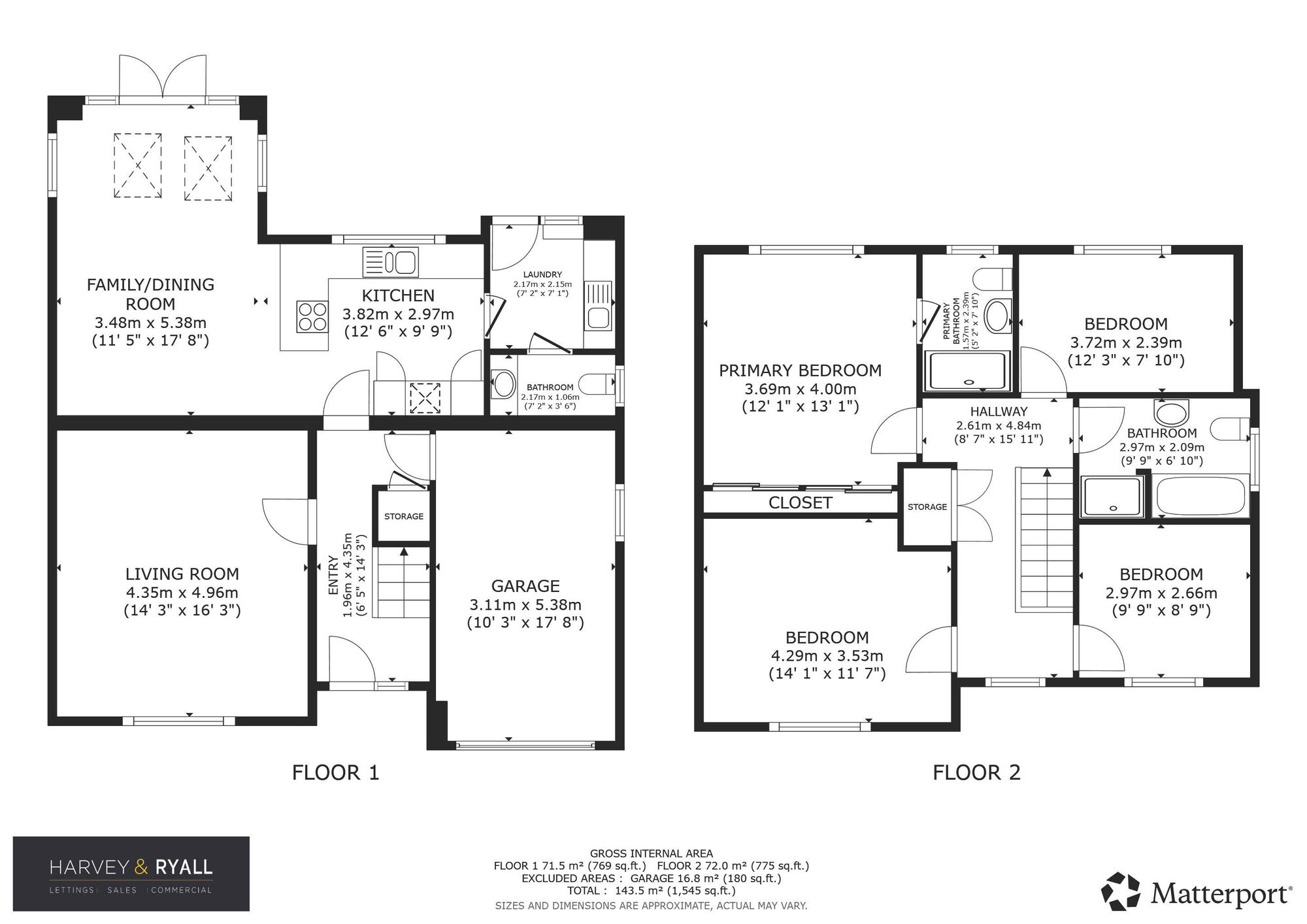Landing 4.84m x 2.61m - Carpeted landing with useful storage space for bedding and towels, complemented by a beautiful wooden banister. Provides access to all bedrooms and the family bathroom, with the en-suite accessed via the master bedroom.