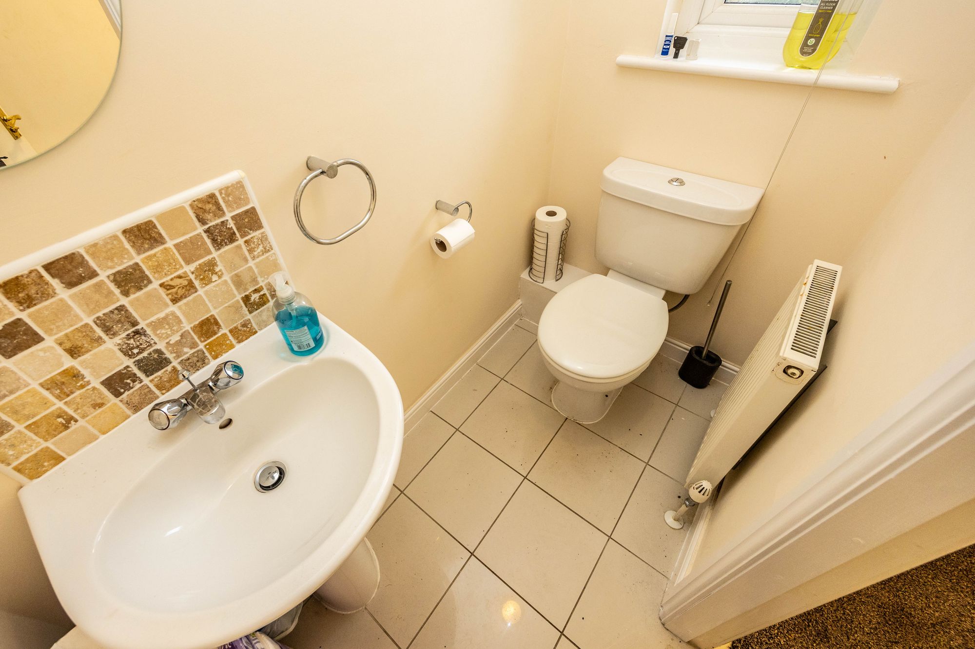 W.C 1.87m x 0.97m - Tiled floor, WC, wash hand basin, radiator and window with obscure glazing.
