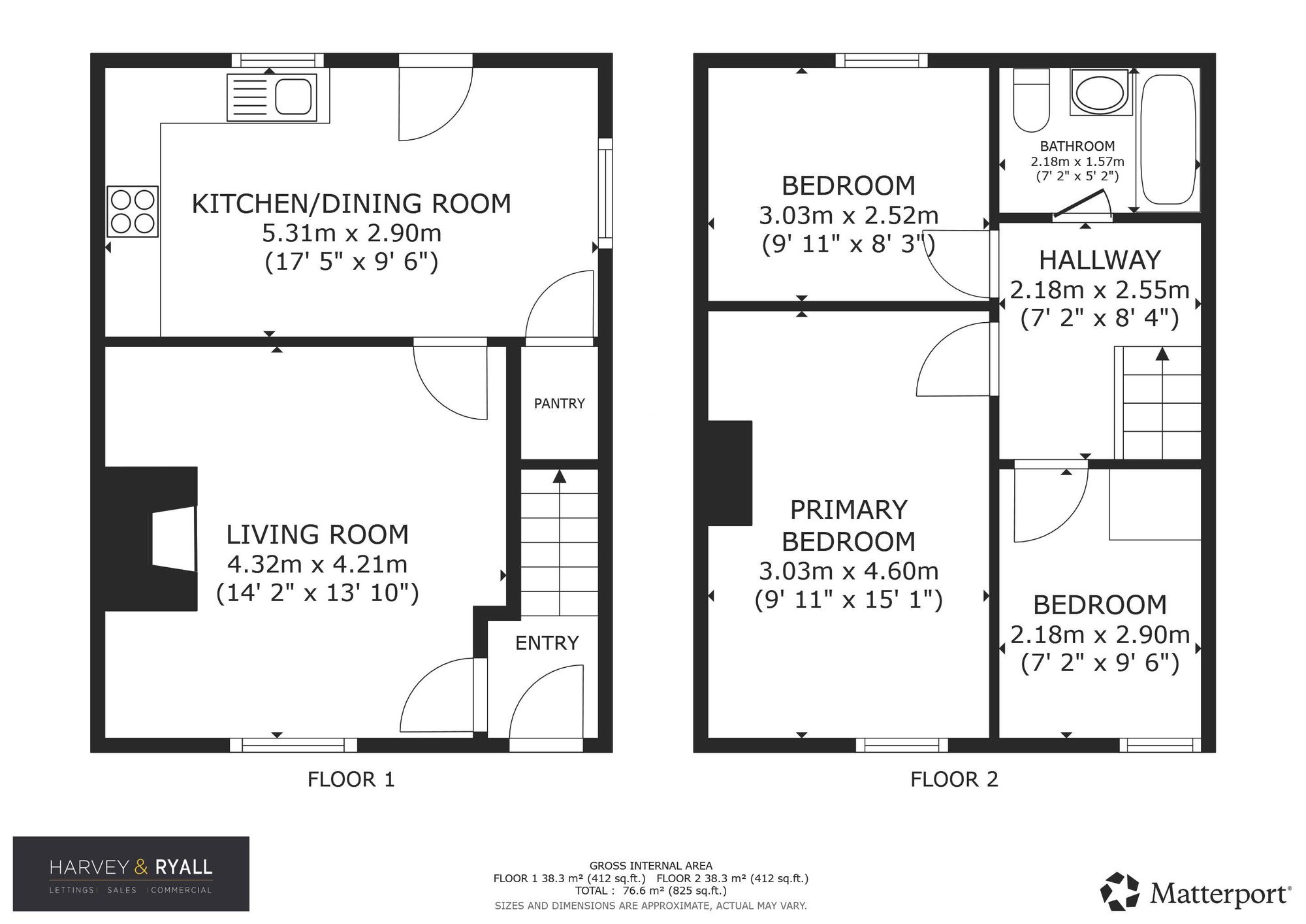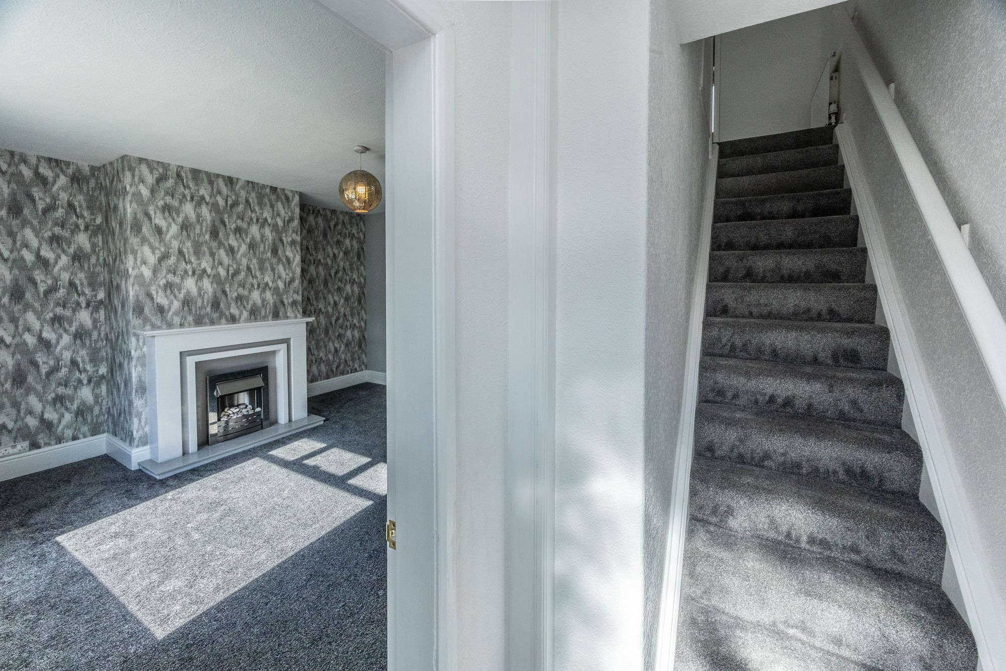 Entrance Hall - Carpeted hallway, with access to lounge, kitchen/diner and first floor.