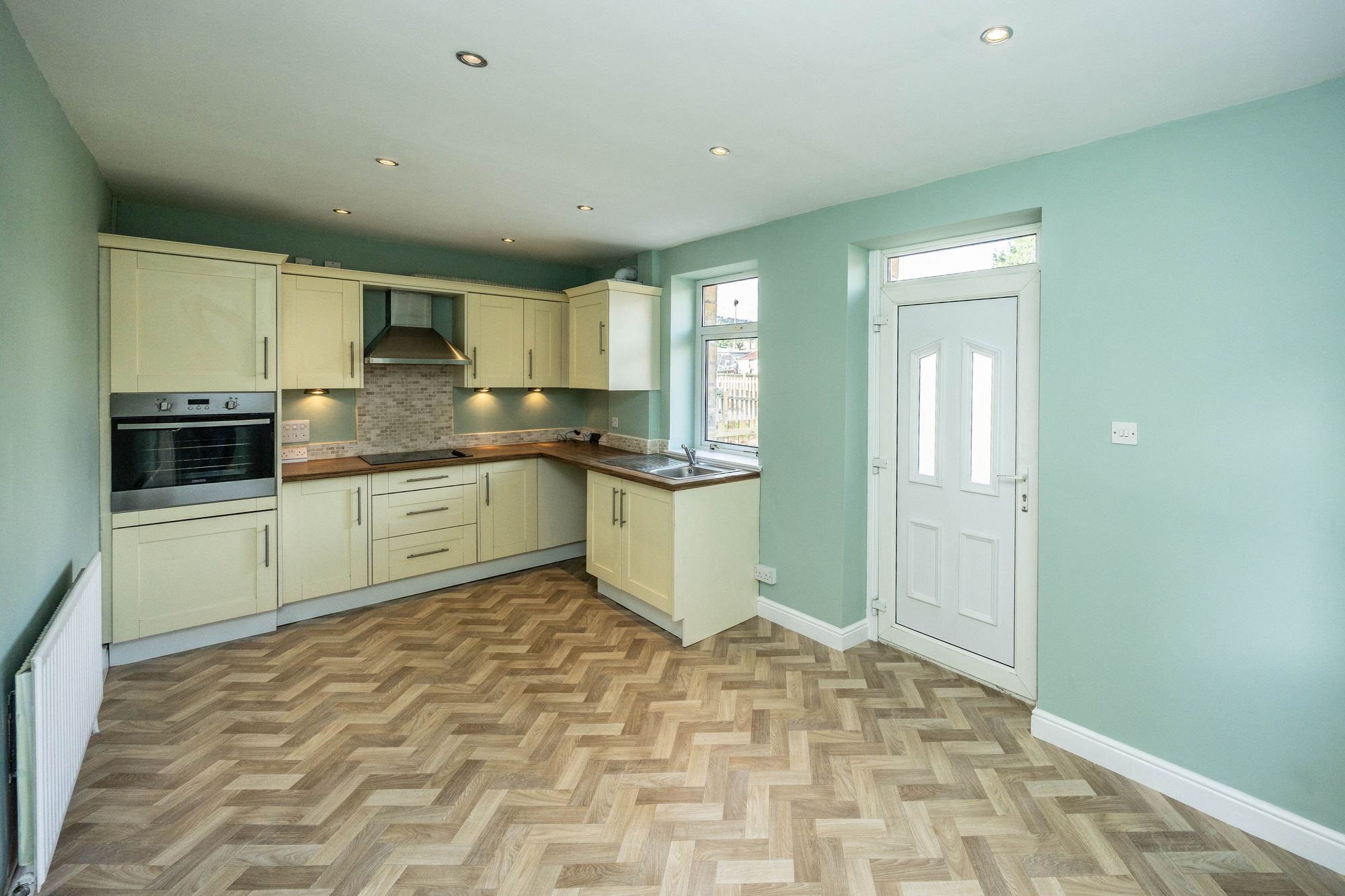 Kitchen/Dining Room 5.31m x 2.90m - A bright and spacious kitchen-dining room with stylish wood-effect flooring and contemporary shaker-style wall and base units. Featuring a four-ring electric hob with overhead extractor, built-in oven, and ample space for a large dining set. A handy pantry is also located from the kitchen. Enjoy views across the expansive rear garden and parking area, with direct access to the garden for added convenience.