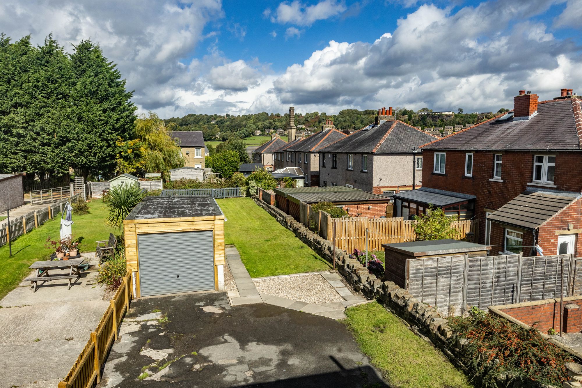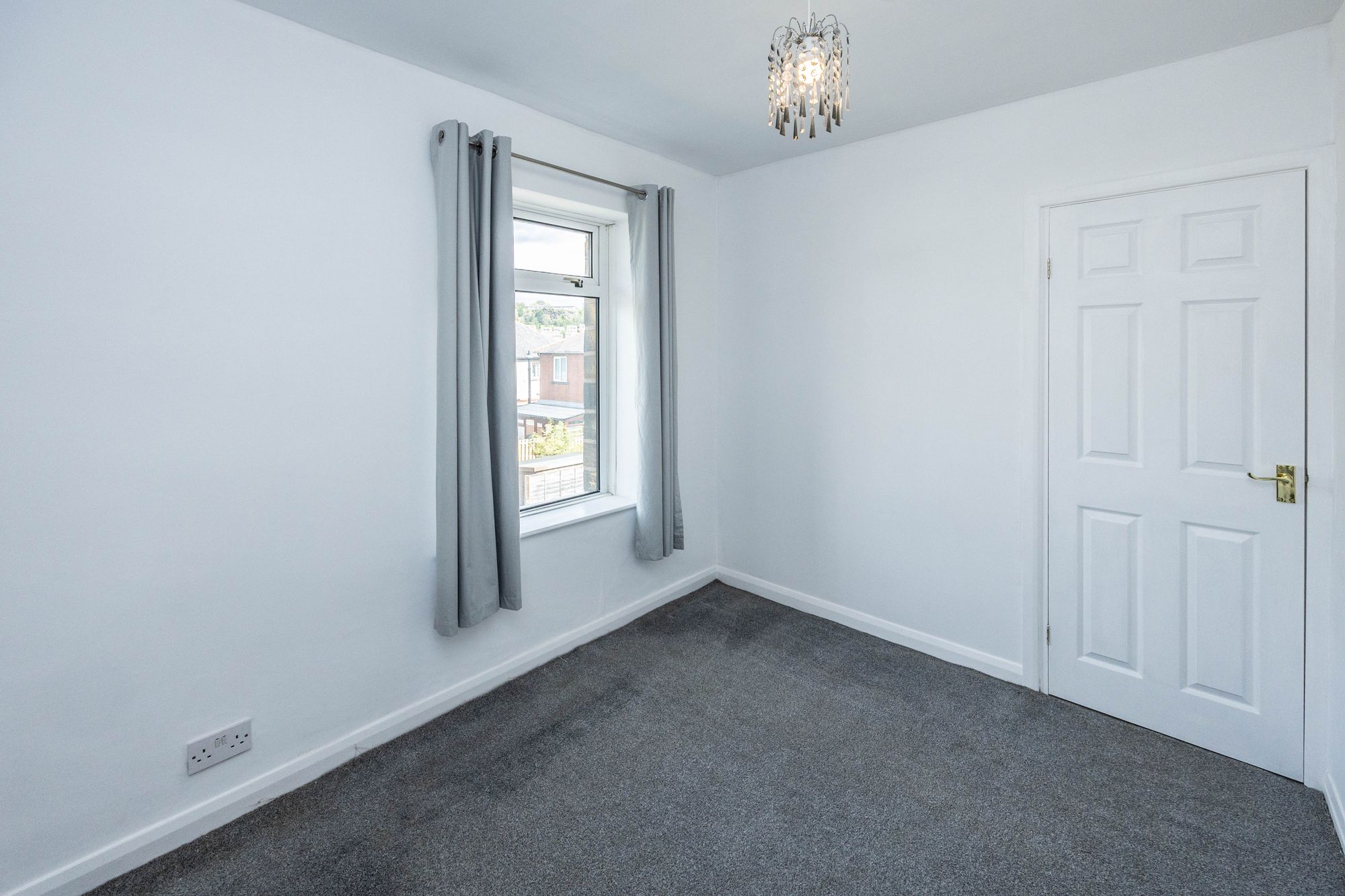 Bedroom 2 (Rear) 3.03m 2.52m - A comfortable double bedroom with soft carpeting and a large radiator, enjoying scenic views and views of the rear garden as well as the garage and parking area.