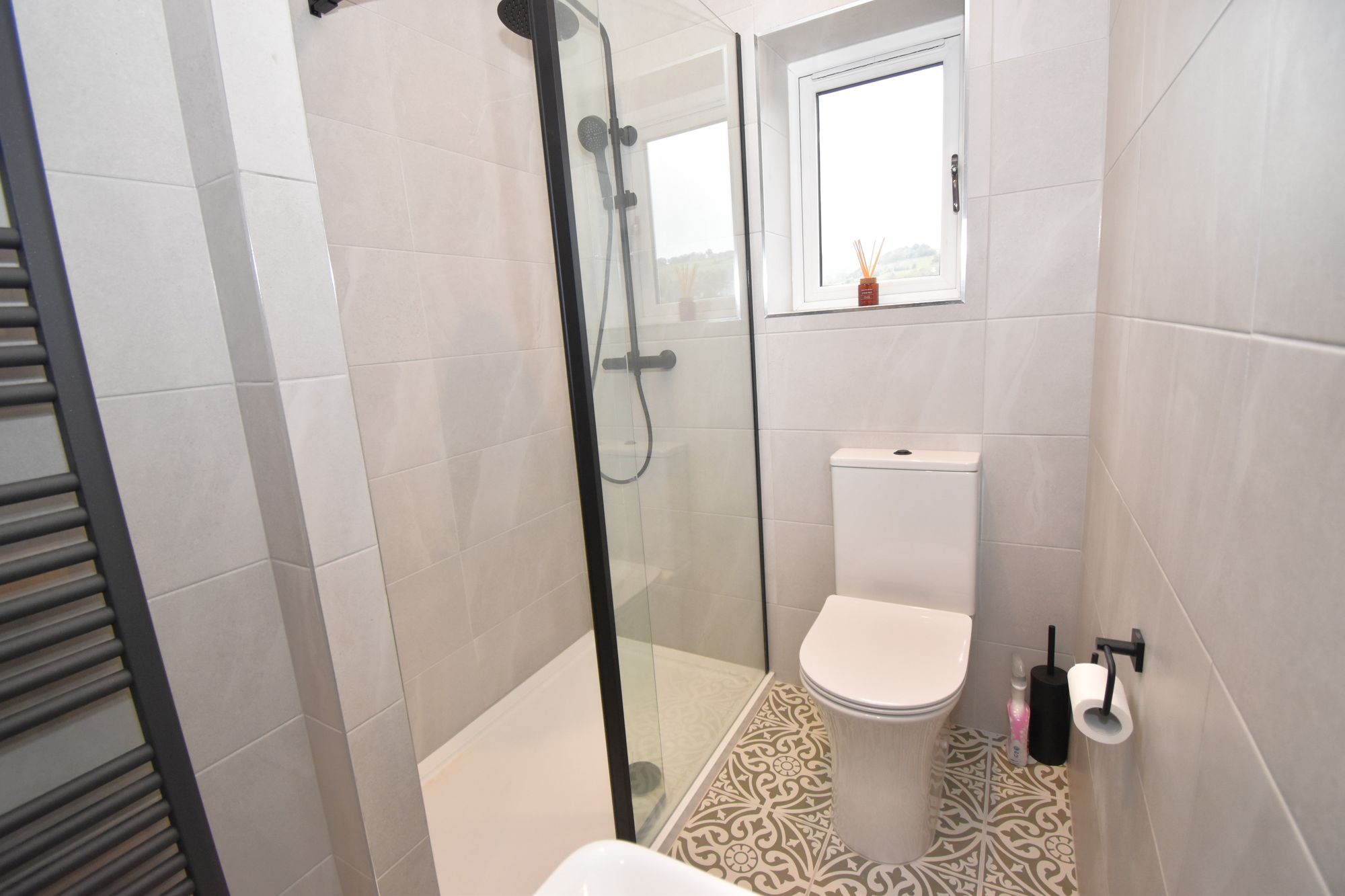 Ensuite bathroom 3.13m x 1.77m - The best bathroom in the property is saved until last. Being reserved for the master bedroom is a lovely touch, full sized bath with central taps and plug. Wash hand basin with double drawer and wall hung mirror. Separate shower tray with fixed glass screen. Wall hung WC with enclosed cistern and soft closing seat. Fully tiled with extractor fan and spotlights.....this bathroom is pure luxury!