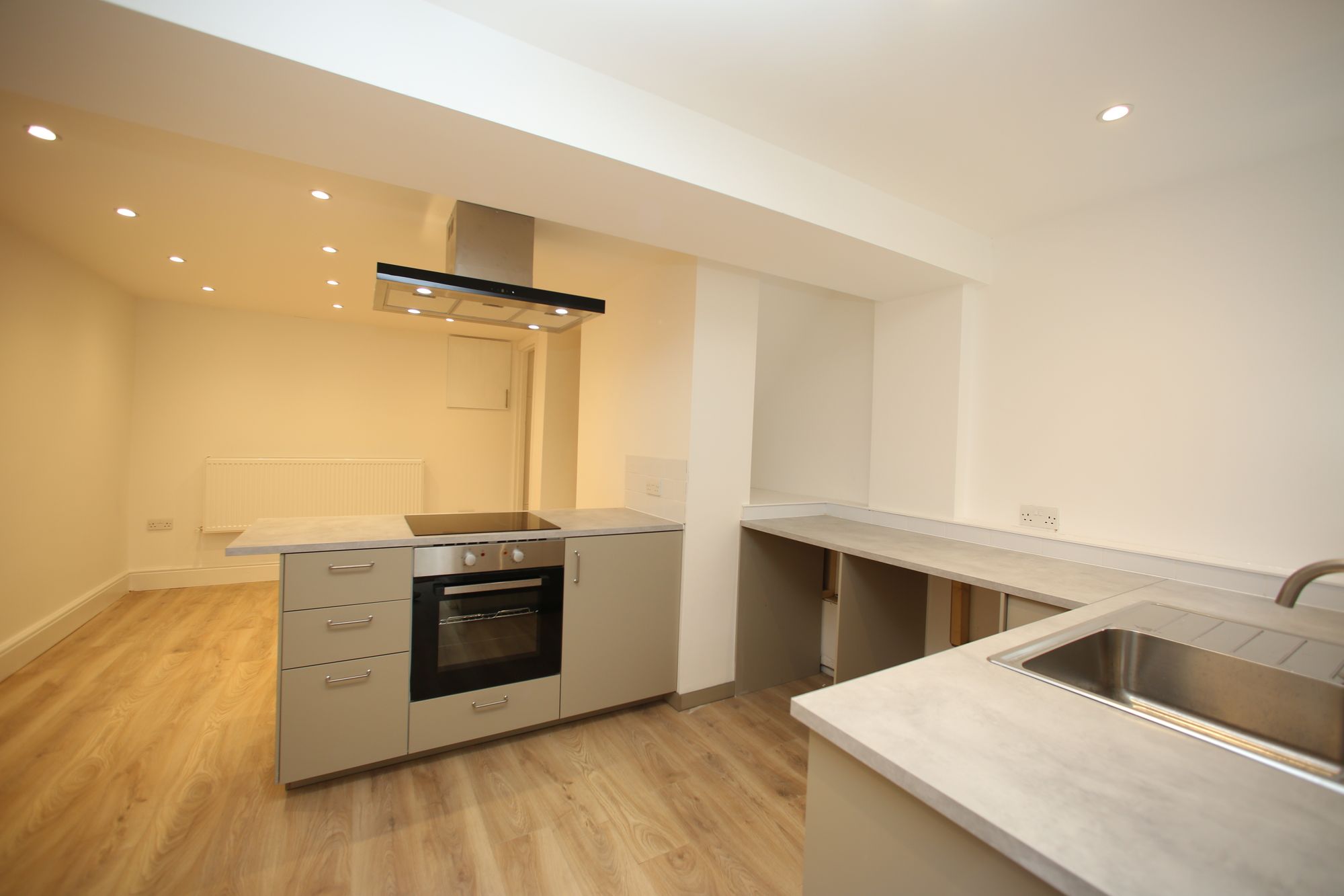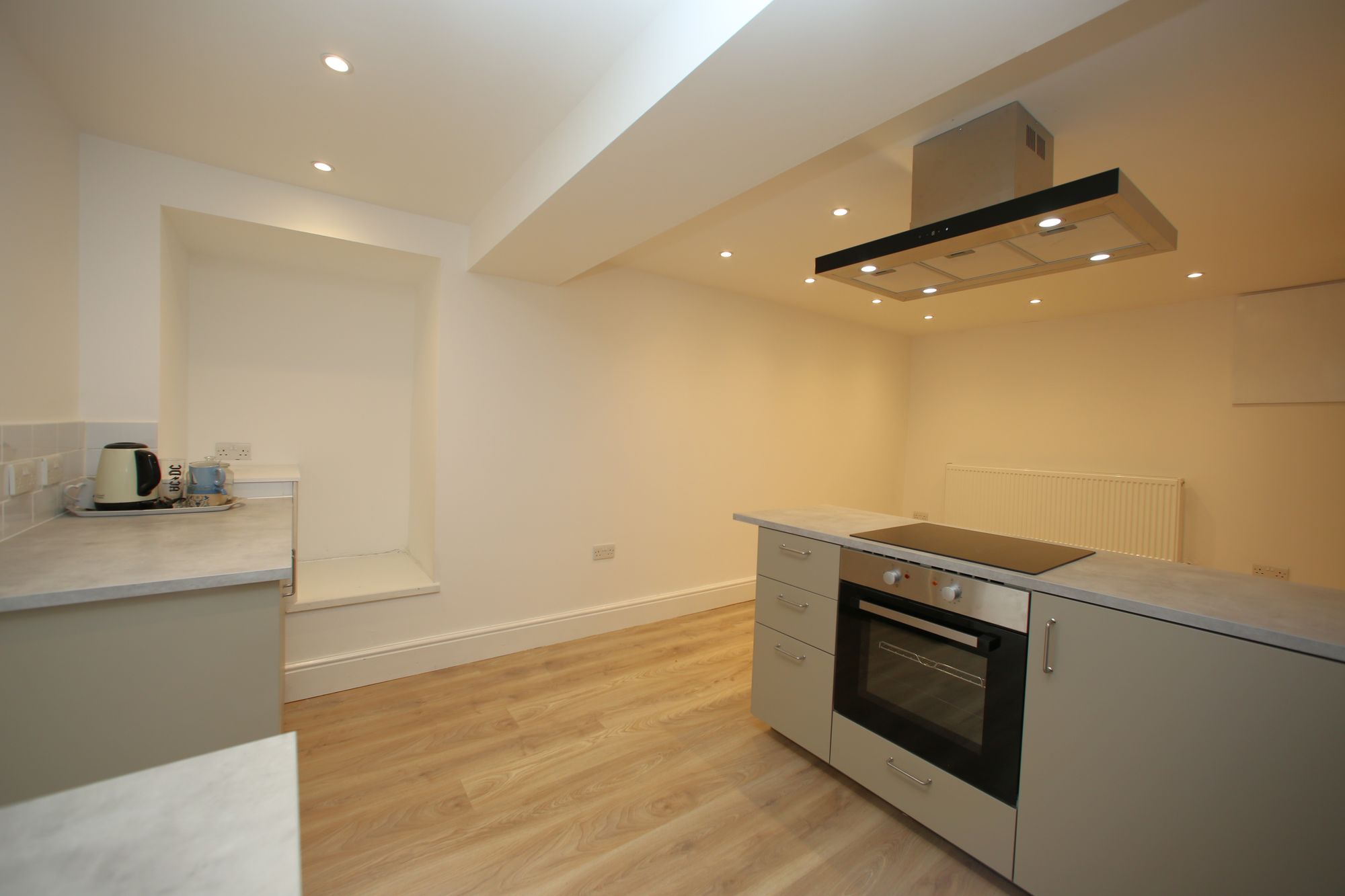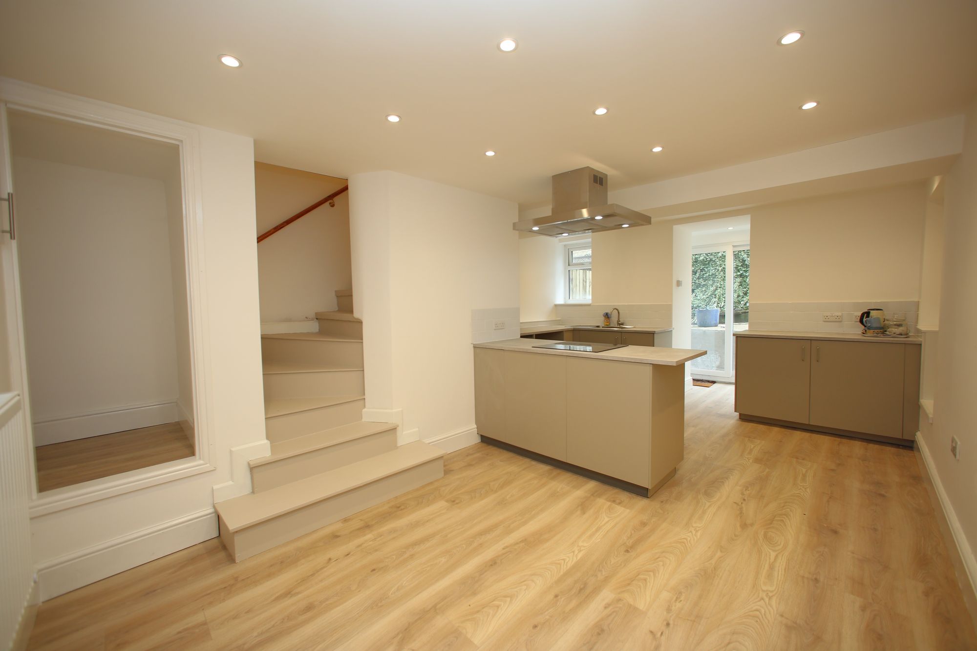 Kitchen/Dining 4.17m x 3.36m – Modern fitted kitchen with integrated oven and 4 ring electric hob with extractor. Stainless steel sink and drainer. Storage and space for washing machine and condensing dryer. This area also has space for a dining table and rear door with access to the garden.