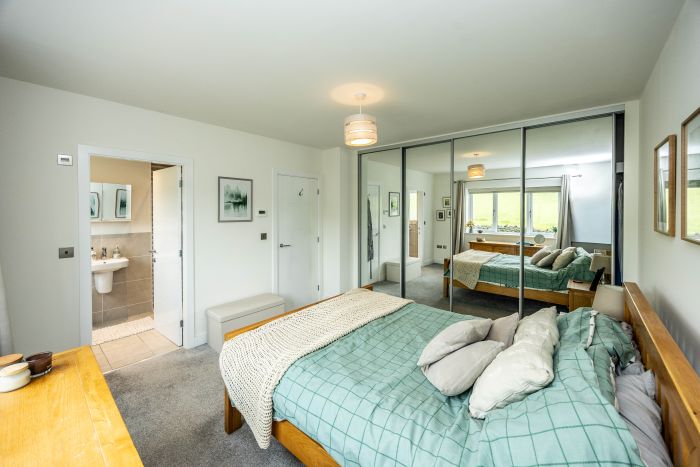 Master Bedroom (Rear) 4.00m x 3.69m – Spacious master bedroom, fully carpeted and offering stunning views over the rear garden and open countryside beyond. Features ample built-in wardrobe space and direct access to a private en-suite.