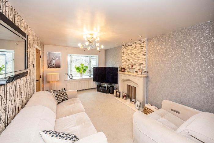 Lounge - Well-lit lounge, enhanced by a large bay window that allows for ample natural light. The space is centred around a stylish panelled feature fireplace, with ample room for family living. Well-positioned within the home, it provides direct access to the kitchen/diner.